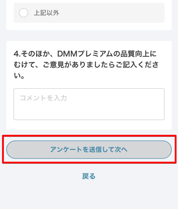 回答を選択・記入し、「アンケートを送信して次へ」を選択します。